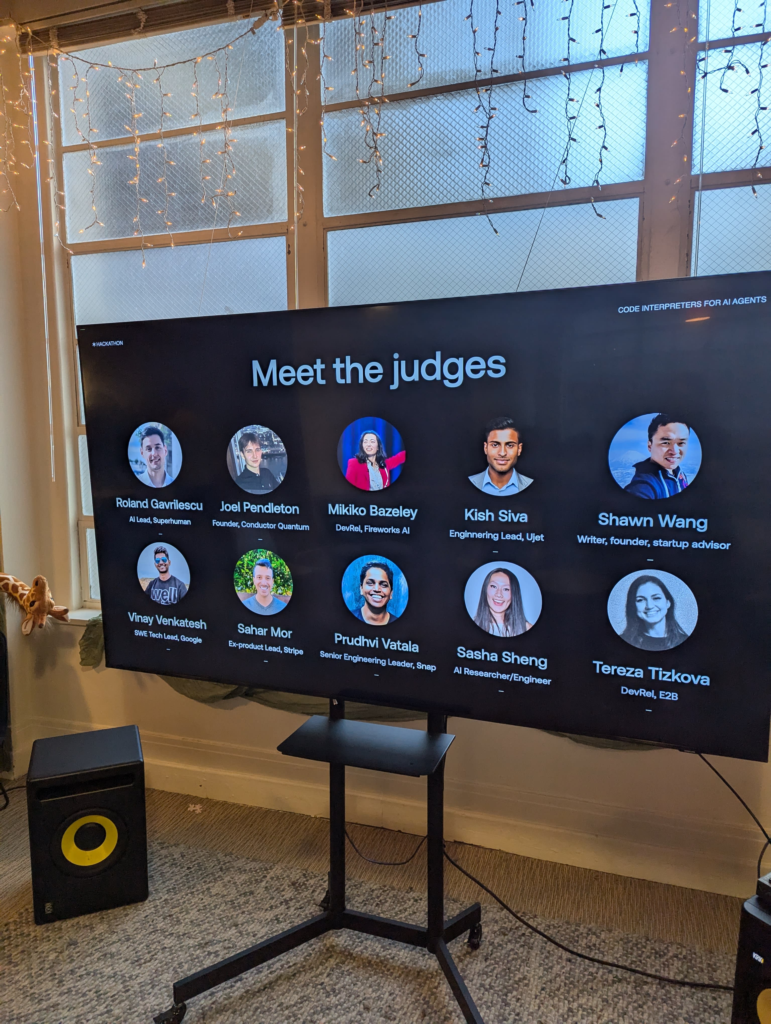 Give them the credit they deserve. This is super important. I had slides with names, roles, and photos of speakers and judges. I showed that on a big screen so attendees could check who is who. Also, have special name tags prepared for speakers and judges. You can differentiate them by color. Give them a promo on socials before and after the hackathon. Create visuals with their names, post videos, etc.