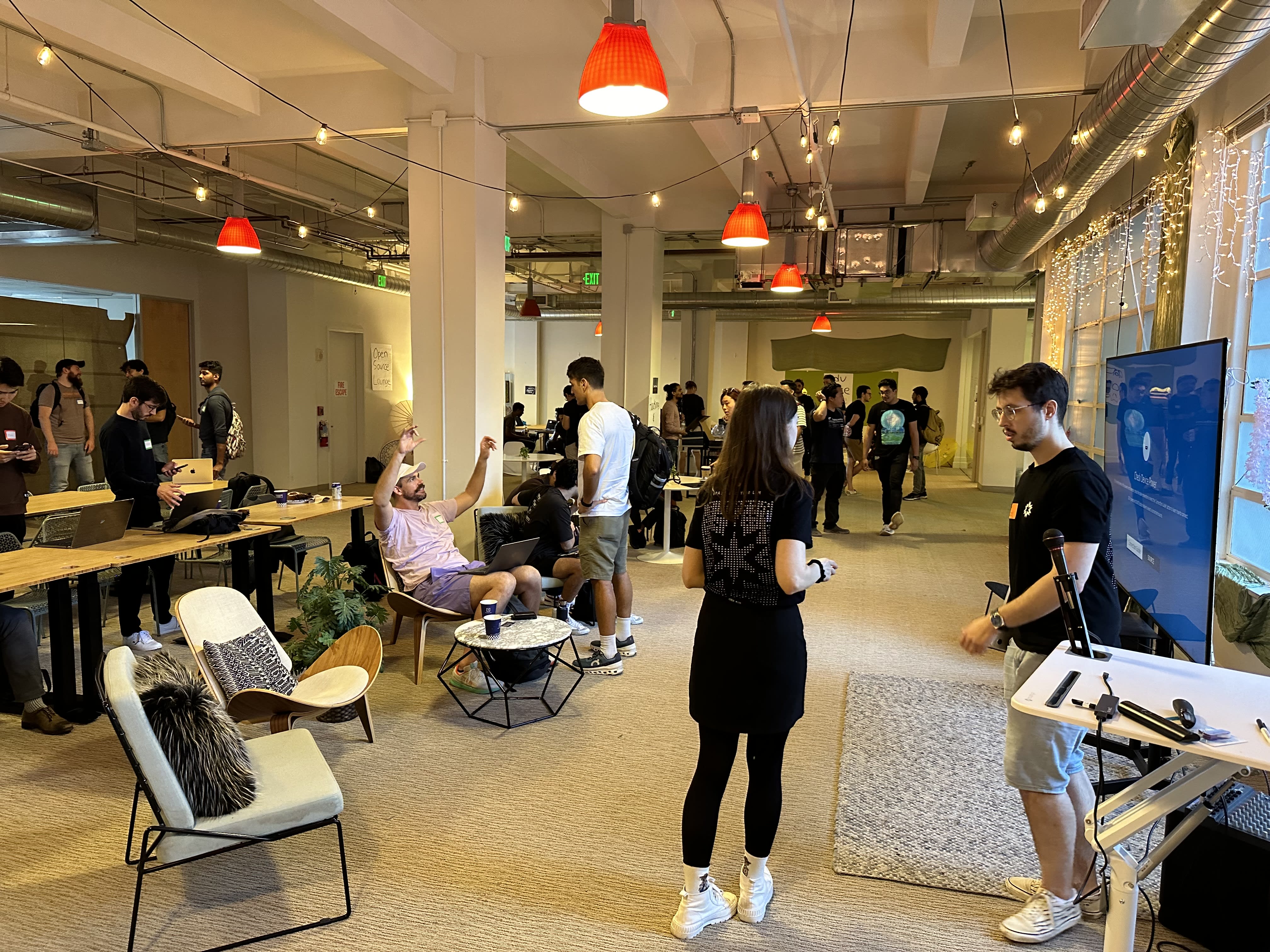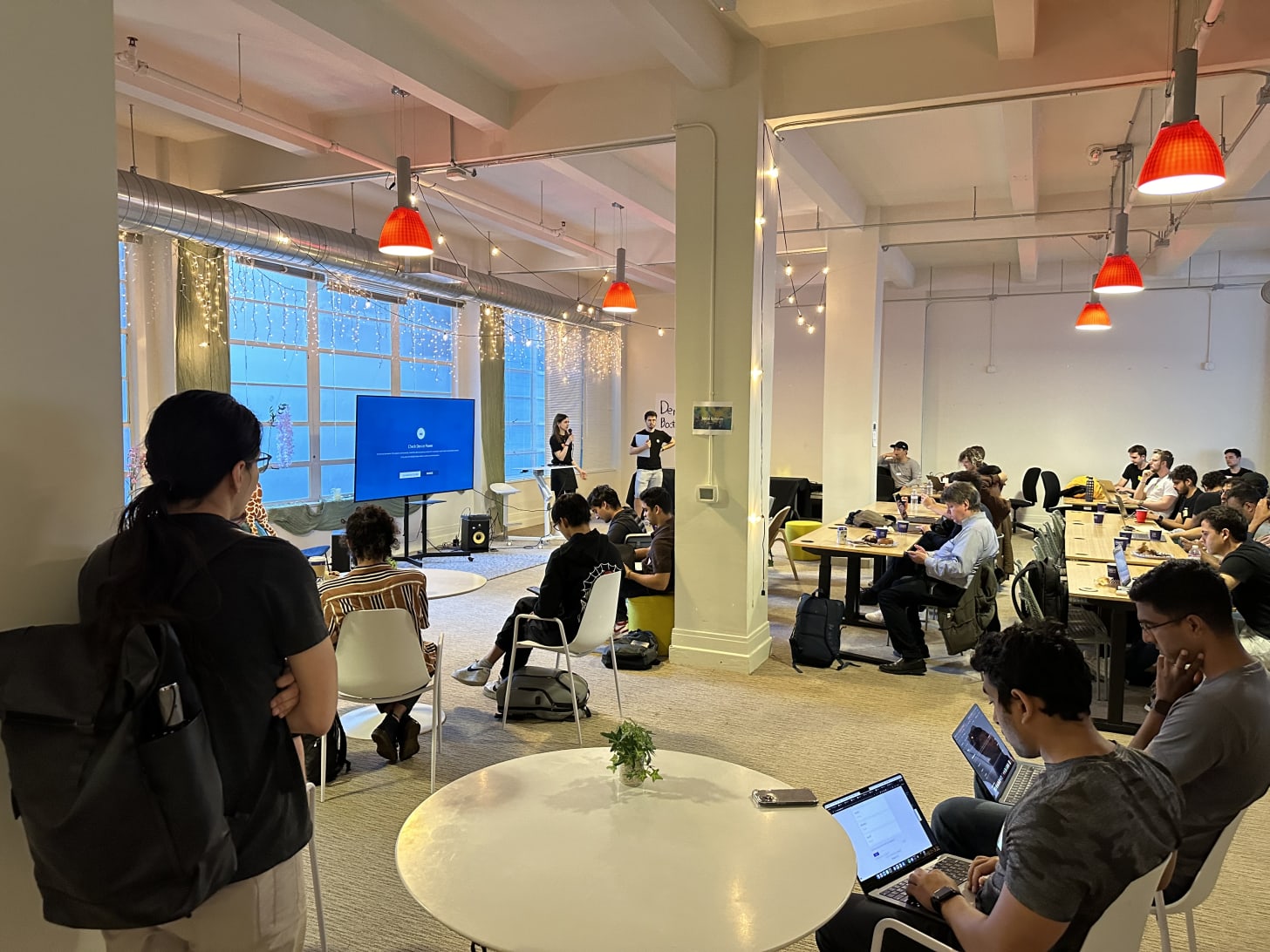 People are just hacking. Most people are focused and fully engaged. Not networking, not wandering around.