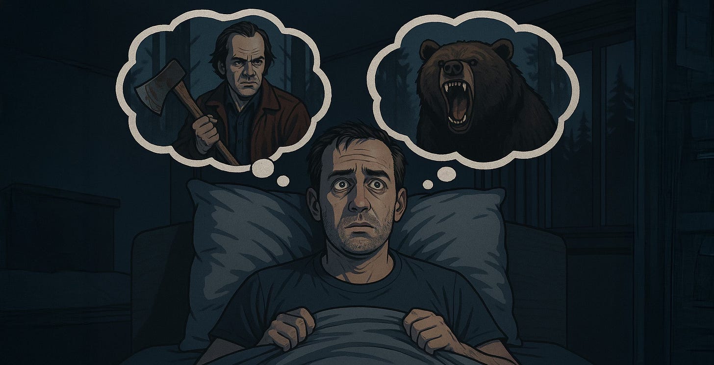 If we’re playing the stats game, it makes way more sense that I’d run headlong into either one of those scenarios than the one I did. The perpetual thoughts of axe-wielding dads and bloodthirsty bears became what fancy psychologists like to call “trauma-related rumination.”