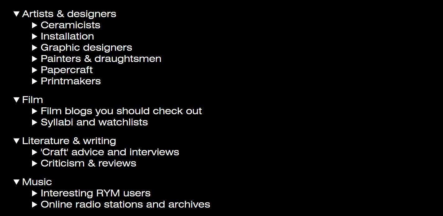The answer (as above) is to orchestrate a mass migration from the ‘Big Web’ to the ‘Small Web.’ We should gradually stop making ‘content’ to feed infinite scroll systems and move instead to small, information-rich websites, which stand by themselves and are owned by the individual. We can then use these websites to make person-to-person culture recommendations as a stand-in for the old algorithmic system. If there is one thing that should be ‘normalised,’ it is the idea that everyone should have their own webpage, even if they have nothing to sell. I would like to get to the point where you can meet someone in the smoking area of a nightclub and bookmark each other’s web address instead of adding each other on Instagram.