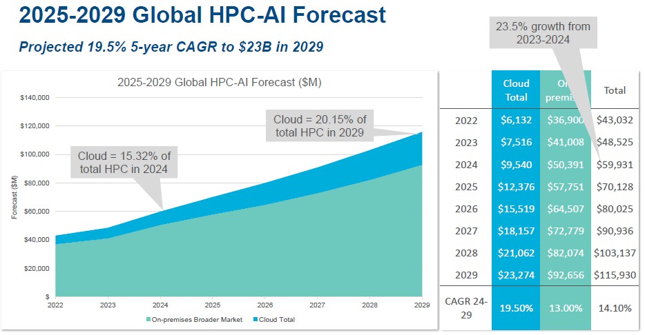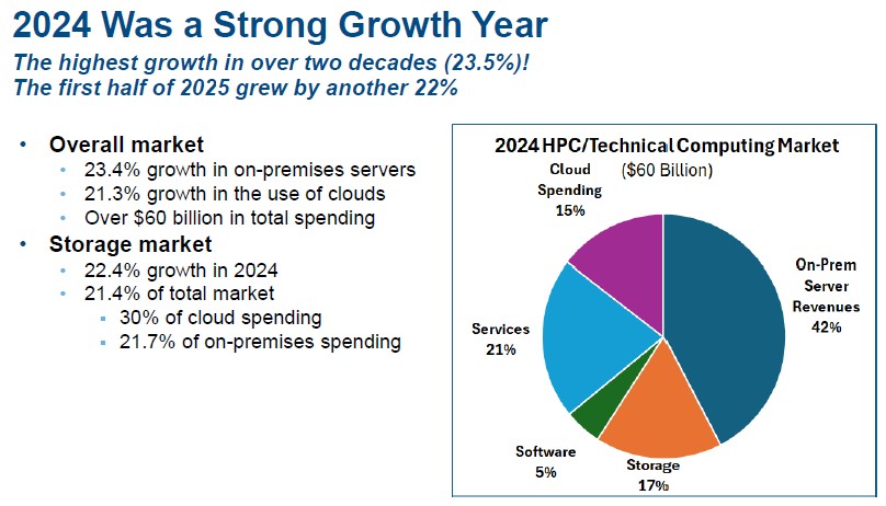 The first full day of the SC25 supercomputing conference opened up this week with the traditional 7 am breakfast by the folks at Hyperion Research, which has only just completed its casing of the HPC market for 2024 and is working on its 2025 numbers and updating its forecasts out to the end of the decade. Earl Joseph and Mark Nossokoff walked through the traditional HPC market with its AI augmentation and its on-premises and cloud deployment models and Bob Sorensen did a deep dive on the quantum computing market. We will follow-up with the quantum analysis separately and stick to the combined AI-augmented HPC and traditional HPC market for now.