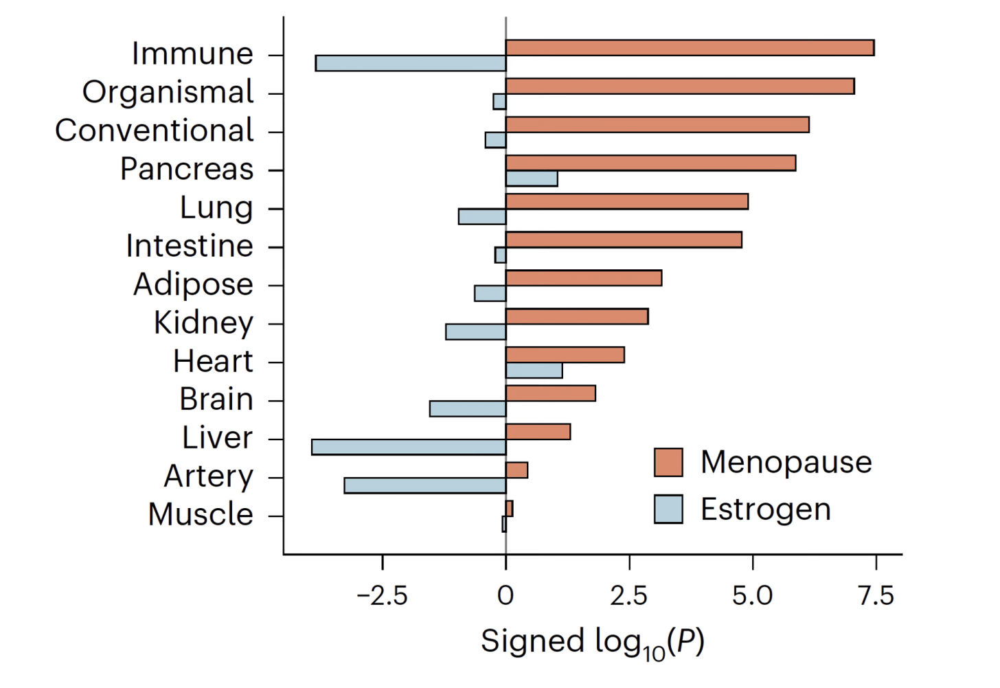 In Aging Cell, prescription drugs linked to reduce mortality were assessed in the UK Biobank cohort of over 500,000 participants. As seen in the graph below, among the 9 drugs found to be associated with reduced all-cause mortality, 4 of them were estrogen preparations.