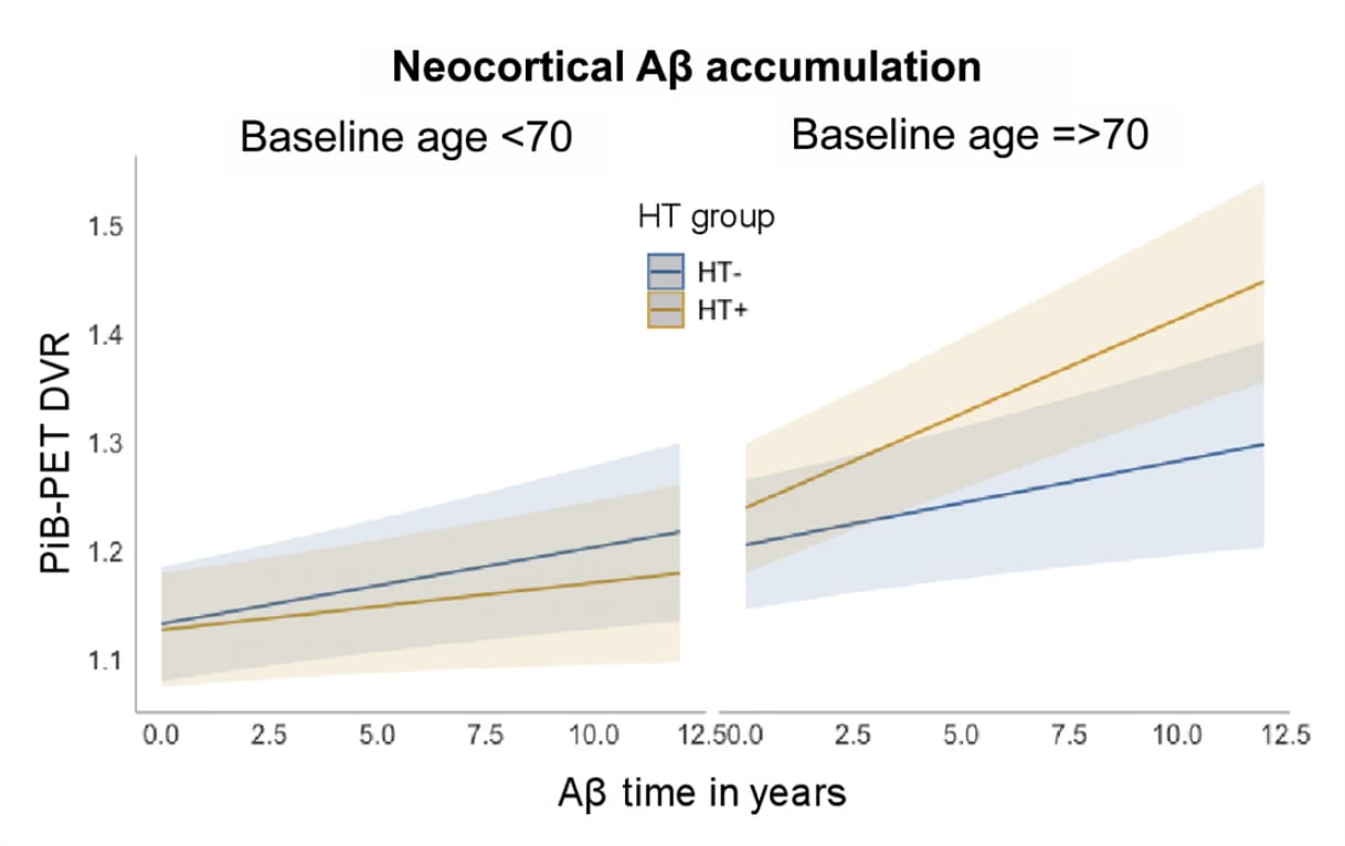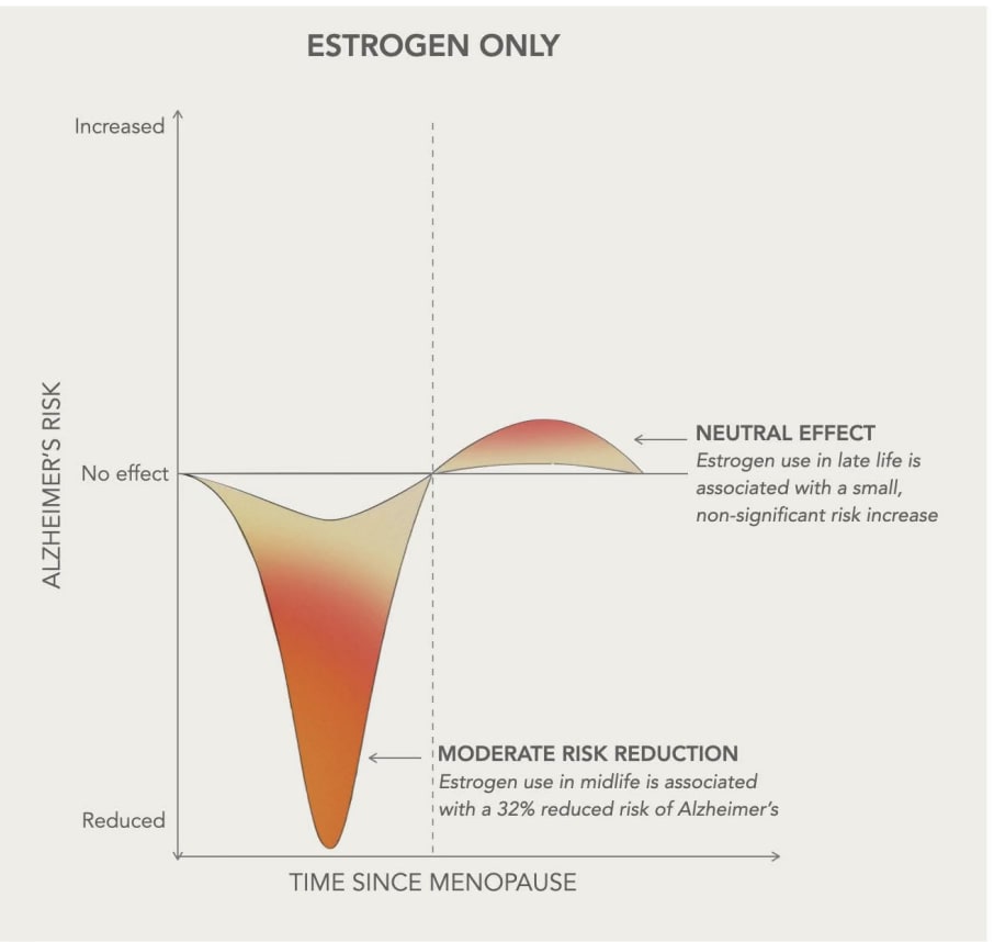In Science Advances, the PET scan accumulation of misfolded proteins (Aβ or Tau) in the brain with estrogen replacement (HT) was only significant in older women at baśeline, but reduced in younger women taking HT.
