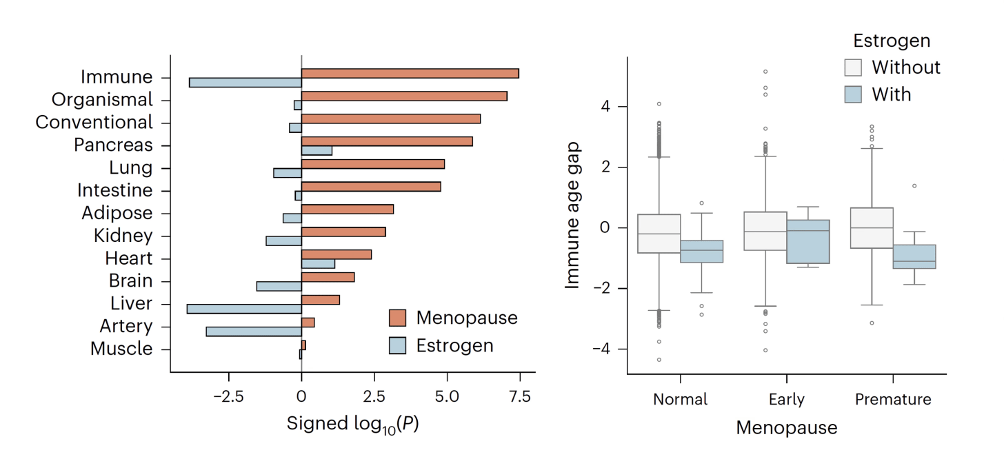 The new organ clock data add to prior reports of estrogen’s effect on preserving bone health, reducing heart disease, preserving cognitive function, reducing the risk of Alzheimer’s disease, and a lower risk of Type 2 diabetes. The Nature Medicine paper provides a new dimension for the benefits of estrogen since it is the first to show the immune system clock is markedly improved. As I reviewed in SUPER AGERS, the immune system appears to be the key to why some people have such extraordinary healthspan. That advantage doesn’t show up in a whole genome sequence but instead requires comprehensive interrogation of our very complex immune system—including assessing the function of various cell types with perturbations and systematic assay of antibodies. The proteomic immune system clock is a promising way to get a handle on this, but more direct means for defining our immunome, which is not available clinically, are in the works (see the First Diagnostic Immunome and Why We Need an Immunome). Moreover, the findings in the new study will need to be replicated by others.