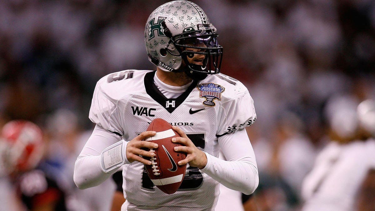 For the young folks reading this, there used to be this magical and mysterious conference in college football called the WAC (Western Athletic Conference). Founded in 1962, it originally included New Mexico, Arizona State, Arizona, Wyoming, BYU, and Utah. At its height in 1998, the WAC included two divisions and had teams competing in it like Air Force, Colorado State, Rice, TCU, Tulsa, UNLV, SMU, Fresno State, and of course, Hawai’i. The Rainbow Warriors won the WAC in 2007 by going undefeated in conference play on their way to a 12-1 record with a perfect regular season. The conference that season included that Boise State team who had just won the Fiesta Bowl over Oklahoma the year before using a hook and ladder play followed by the Statue of Liberty. Please excuse the 240p video, it’s ancient footage. I hope it’s in the National Archive.