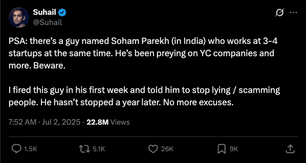 If you’ve been following tech news lately, you probably came across the wild story of Soham Parekh, the Indian developer who managed to hold, allegedly, at least five jobs simultaneously, many of them at Y Combinator-backed startups. And he did it while living in India.