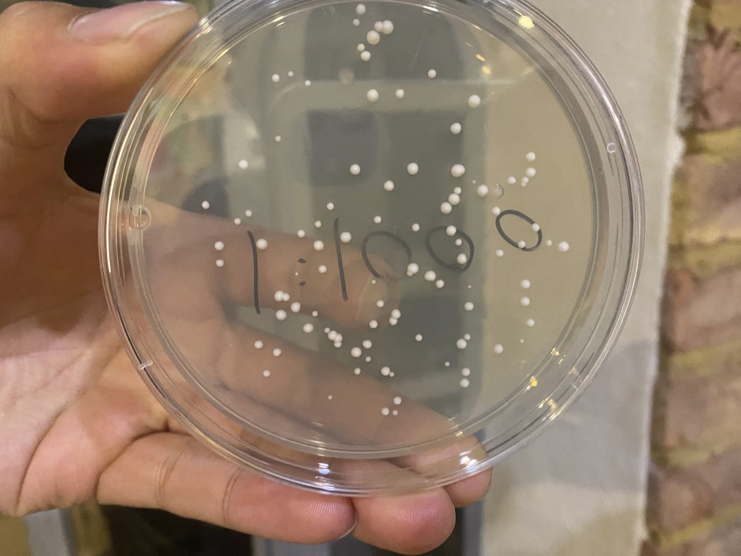For the next part, I’m going to use blast some of the 1:1000 concentration with UV and test to see how much dose kills it.