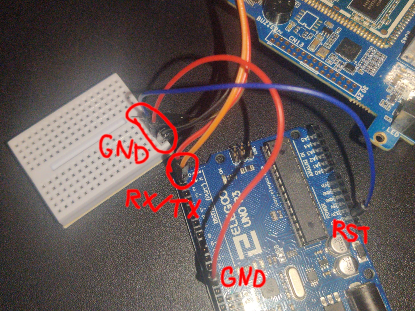 I didn’t have a USB-UART adapter lying around—but I did have an Arduino Uno R3. I wondered if I could abuse it as a dumb serial passthrough. Turns out, I could.