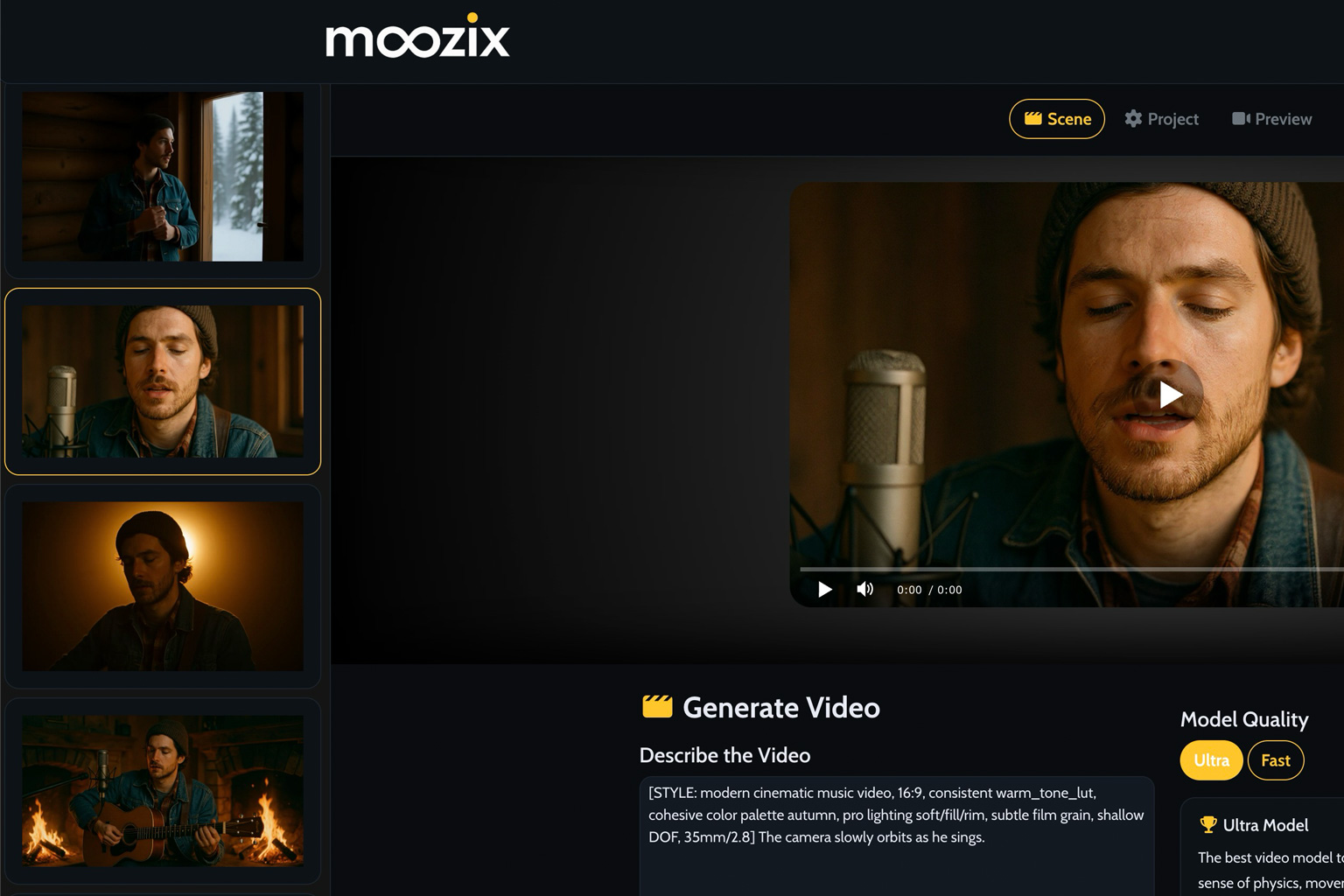 Upload your song & add a photo. We do the rest—beat-synced cuts, identity-consistent shots, and export-ready video.