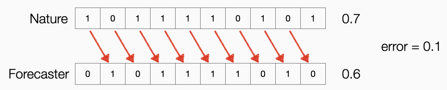 Juanky and I describe how, in most setups people use, this is indeed the case. You can make predictions by correcting past errors. Figuring out which prediction to make can be reduced to a simple binary search problem. And these simple searches that correct past errors achieve theoretically optimal bounds based on the information gathered during play. If you know how you will be scored and what your competitors will be using to make predictions, you don’t have to “know what nature is going to do” to be a superforecaster. You can get good prediction scores just by correcting your past errors.