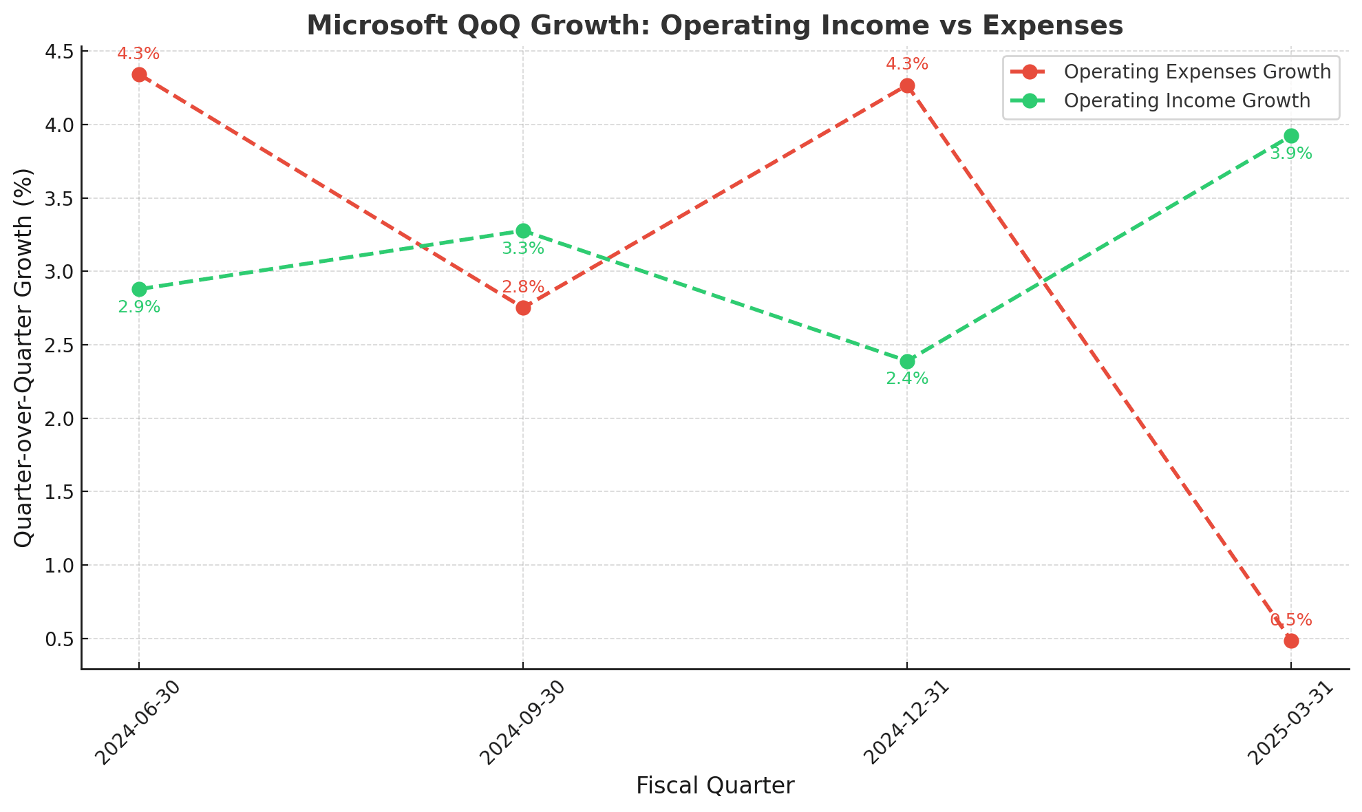 QoQ changes for Microsoft's Operating Expenses and Operating Income,