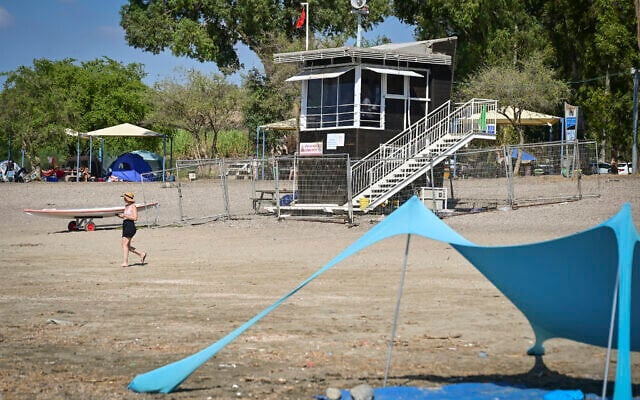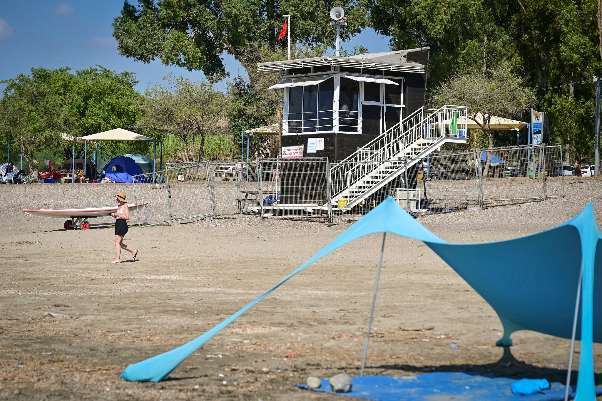 A lifeguard stand at the Sea of Galilee on October 13, 2025. (Michael Giladi/Flash90)