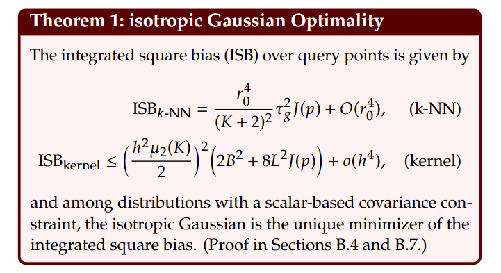 For non-linear probes like k-NN and kernel methods, the isotropic Gaussian is proven to be the unique minimizer of the integrated squared bias (Theorem 1).
