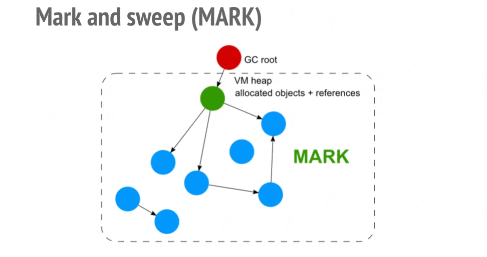 After marking, the GC scans the entire heap. Any object not marked as live is considered garbage and its memory is reclaimed.
