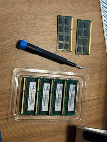 The first thing I needed to do was get the parts for the upgrade. I found a set of RAM on OWC and ordered it which took about a week to arrive. As for the hard drive, I opted to use one of my higher capacity SSDs from my old daily driver: the mid-2012 MacBook Pro.