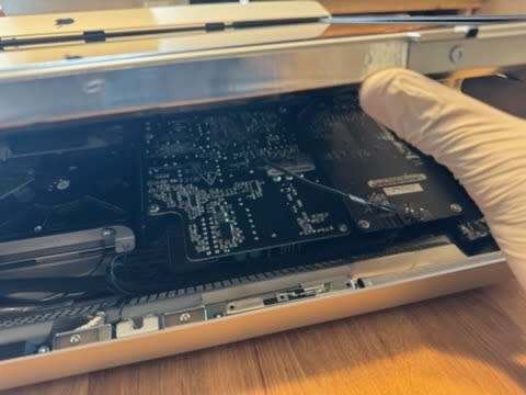 With the RAM installed, it was time to open up the iMac and perform the drive upgrade. I grabbed a pair of rubber gloves to help avoid fingerprints on the LCD panel as they are a pain in the butt to clean off afterward.
