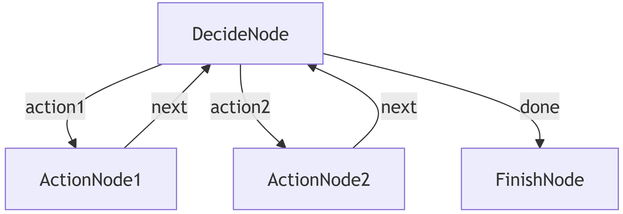 The DecideNode is the warrior's brain—the battle tactician. It assesses the situation and chooses the next move. The ActionNodes are the specialist soldiers who carry out a specific command. And the loop back is the report, bringing new information from the battlefield back to the tactician.
