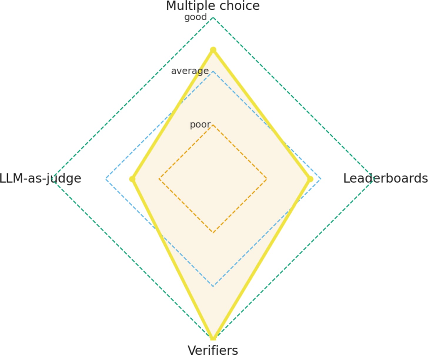 In this article, we covered four different evaluation approaches: multiple choice, verifiers, leaderboards, and LLM judges.