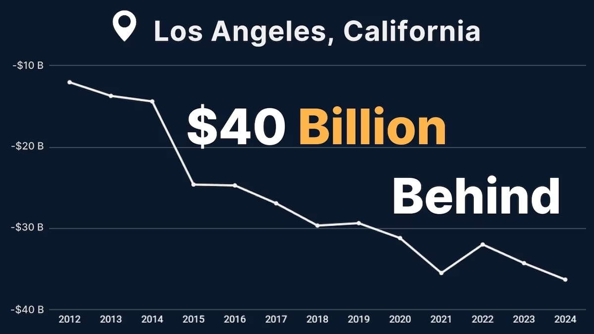 For decades, LA’s prosperity has been an illusion of motion. Each wave of development — another subdivision, another mega-project, another round of borrowing — produced a temporary surge in cash flow. The city paved more streets, expanded more utilities, and added more infrastructure than it could ever maintain. To cover the gap, it relied on new growth to pay for old promises. That worked for a while. Then it didn’t.