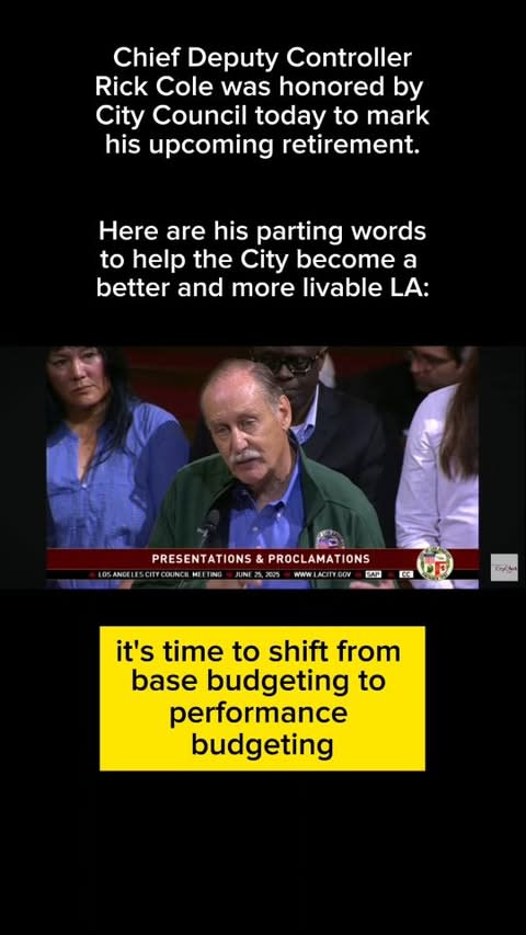 After 40 years inside City Hall — from his early days under Councilmember Richard Alatorre to his final role as Chief Deputy Controller — Cole told the Council he’s never been more alarmed about the city’s future. He ticked through the list: a state of emergency on homelessness, a crumbling infrastructure, grotesque inequality, and what he called “a failing public trust in government’s ability to confront these existential challenges.”