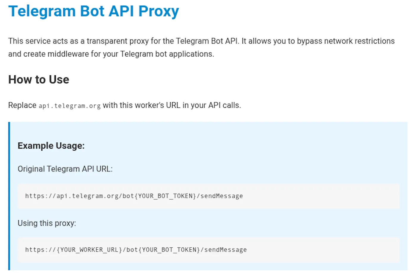 - Provide opt‑in use: the proxy endpoint would be an optional parameter, not the default, and certainly not a silent replacement for api.telegram.org.