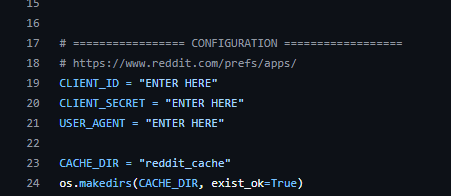 Because some threads can get quite large, it doesn’t make sense to re-download everything each time you run an analysis. Once the data is saved locally, subsequent runs will reuse the cached data instead of calling the Reddit API again.