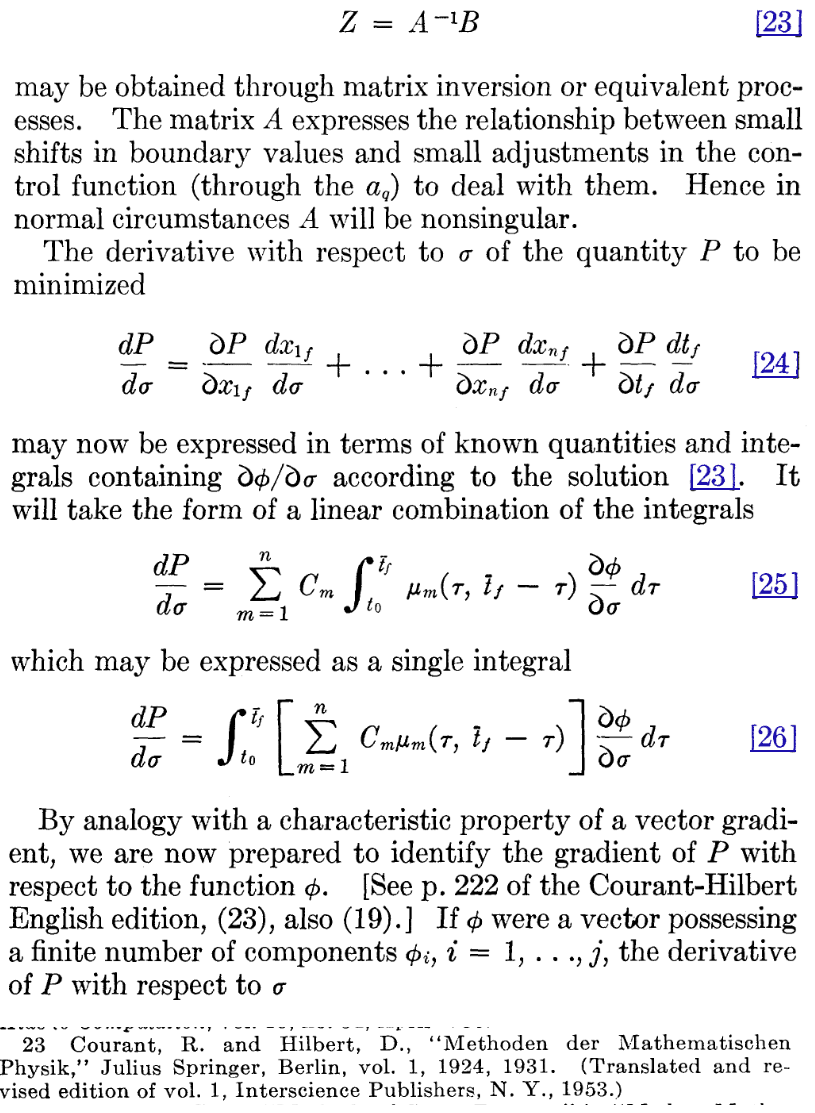 This particular episode on “Who invented Backpropagation (BP) ” (See original blog here) led me to one of the papers I had long bookmarked but never actually perused: H. J. Kelley’s “Gradient Theory of Optimal Flight Paths ”. ARS Journal, Vol. 30, No. 10, pp. 947-954, 1960.