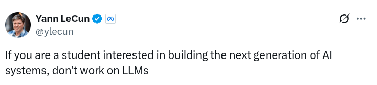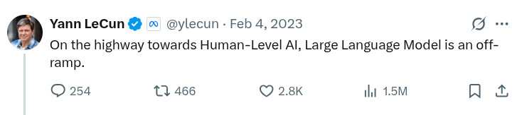Within FAIR, much of the blame for this culture can specifically be put at the feet of Yann Lecun. I have to credit the guy, he's a brilliant researcher. But as the Chief Scientist at Meta and one of the original FAIR founders, he's remarkably set in his ways. Several years ago, Yann was adamant that Meta should build on torch in Lua instead of porting to Python, more or less because he liked Lua a lot. He ignored auto regressive modeling, arguing throughout 2020 that transformers were not going to amount to anything and discouraging work in that direction. My more critical friends who have worked with Yann think this is because he's salty that convolutional networks became less important by comparison. In 2022, the original Llama team supposedly had to go behind Yann's back, building their initial prototype in secret and then showing it directly to Mark. This is supposedly why Meta has a GenAI team separate from FAIR. And now, while FAIR is hemorrhaging the very same researchers that produced the Llama models, Yann continues to argue against the usefulness of LLMs.