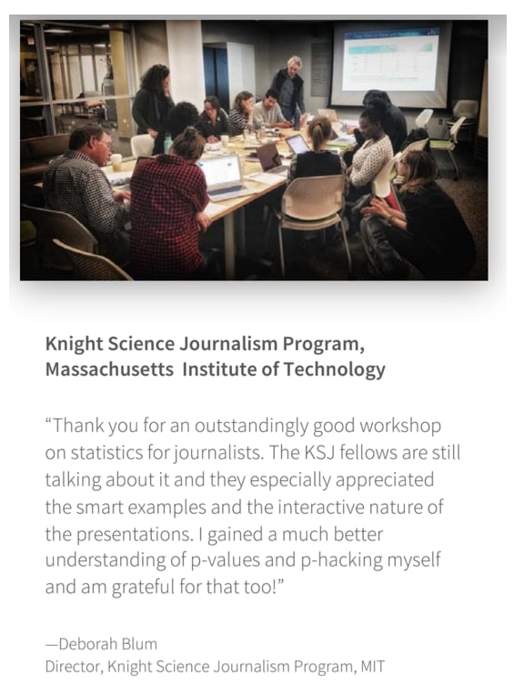 I’ll admit to a bit of self-aggrandizement in retelling these stories . . . but they are also a symptom of a broader problem. How routinely awful must science communication and journalism be, if multiple people were surprised that the John Oliver show could get even the most elementary facts about statistics correct? What would it say if every time anyone publicly mentioned gravity, physicists had to hold their breath to see whether someone said gravity increases with the square of distance, rather than being inversely proportional to distance squared? It shouldn’t be so difficult, or so surprising, for journalists to get basic issues correct.