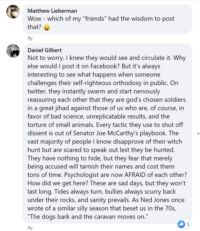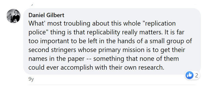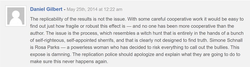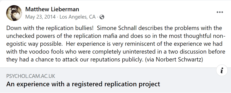 As a result, the 2014 time period was marked by a number of controversies over the role of replication in science, as well as the attitude and tone of debates on social media. I’ll spend a bit of time describing the controversies, not because they were all that strategically important, but just because I personally found it fascinating. Also, to this day, no one has fully catalogued all of the back-and-forth accusations, much of which I found only by looking for old expired links in emails or documents, and then going to the Internet Archive.