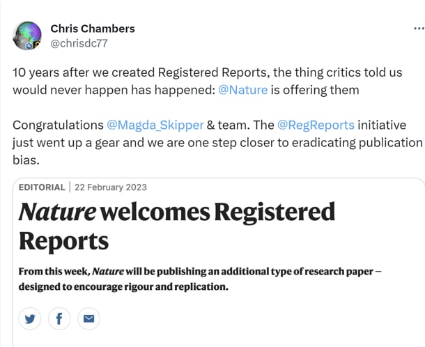 I had already come across Brian Nosek after an April 2012 article in the Chronicle of Higher Education titled “Is Psychology About to Come Undone?” I was impressed by his efforts to work on improving standards in psychology. To be sure, I don’t normally remember what articles I saw in a specific month over 11 years ago, but in searching back through my Gmail, I saw that I had emailed Peter Attia (who recently published an excellent book!) and Gary Taubes about this article at the time.