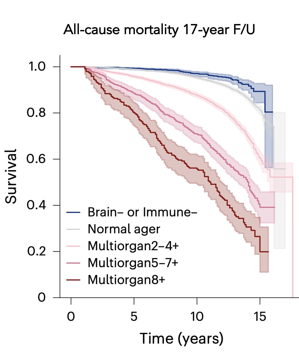 The use of the BAG here is of interest, providing a metric to show protection from accelerating aging. But that could be corroborated by brain clocks, using proteomics to determine the brain pace of aging, which have previously and consistentty been shown to be a critical determinant of lifespan and healthspan (Figure below, as previously reviewed in Ground Truths). Other biological clocks such as DunedinPACE using methylation would also be helpful.