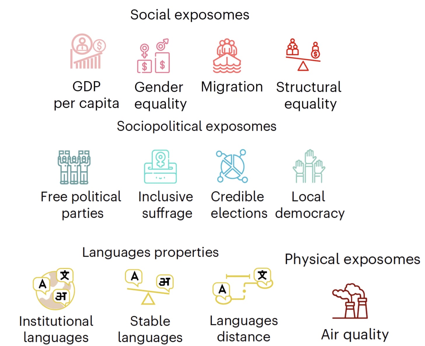 The compelling part of the report s the depth of analysis and stress testing of their results. They controlled for everything possible (education, cognitive function, physical activity, etc), including all different types of exposures (exposomes), some of which are shown below, leaving out country analyses, multiple tests and optimization of their model, and a blitz of sensitivity analyses.