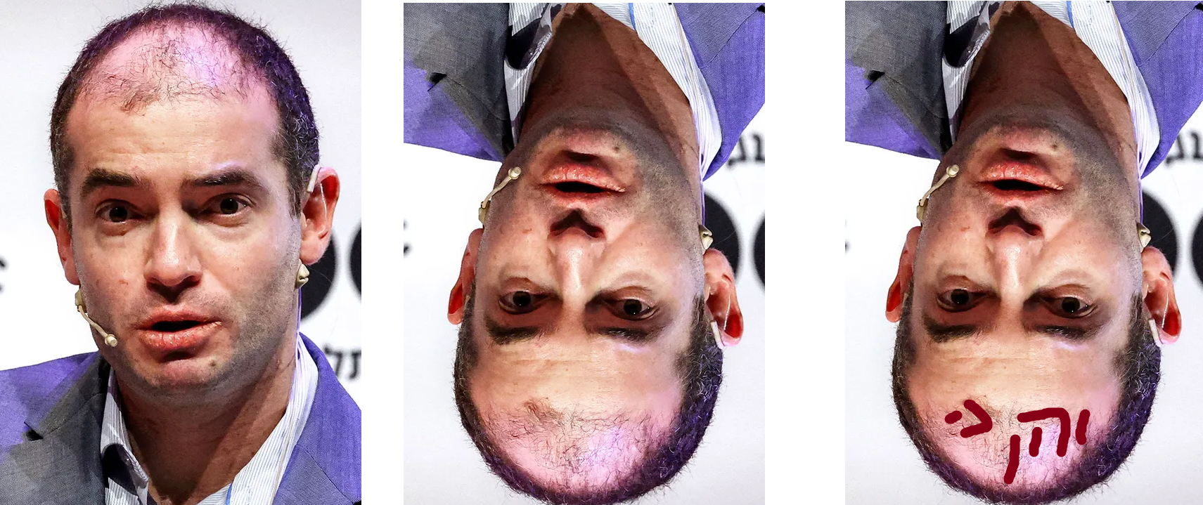 Is there some sense in which Ilya Sutskever has “his Father’s name written on [his] forehead”? As weird as it sounds, I think this one might just be literally true. There is some kind of unusual pattern on his forehead (image source). I cannot make heads or tails of it right-side-up, but when I flip it over…