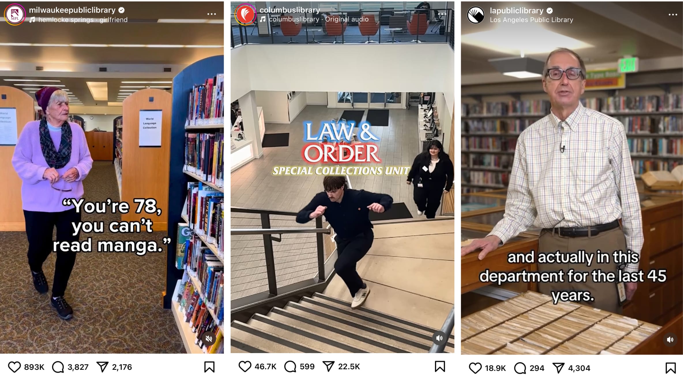 Library Social is the best corner of the internet. There’s Milwaukee Public Library’s Shakespearian way into trends, Los Angeles Public Library’s entertaining staff videos, and Columbus Metropolitan Library’s TV show spoofs. In an algorithm that can feel rather horrible at times, the various library accounts across the country (what I’m calling Library Social) are a wholesome reprieve.