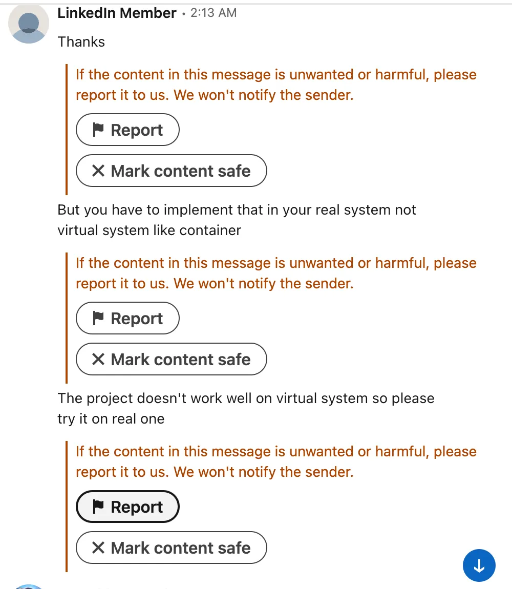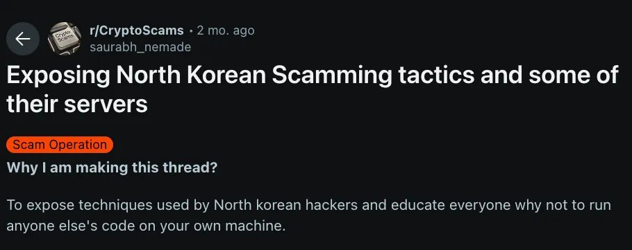 Multiple victims report this exact sequence. On Reddit, one developer described being asked to “clone it again for a new update and run the app without Docker on a real machine while sharing my screen”. This tactic reflects a deliberate effort to ensure execution in a vulnerable context.