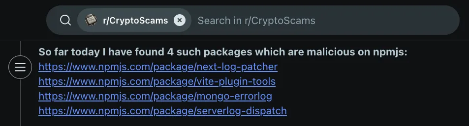 The Socket Threat Research Team has uncovered an extended and ongoing North Korean supply chain attack that hides behind typosquatted npm packages. Threat actors linked to the Contagious Interview operation published 35 malicious packages across 24 npm accounts. Six remain live on the registry (react-plaid-sdk, sumsub-node-websdk, vite-plugin-next-refresh, vite-loader-svg, node-orm-mongoose, and router-parse), and together have been downloaded over 4,000 times. We have petitioned the npm security team to remove the remaining live packages and suspend the associated accounts.