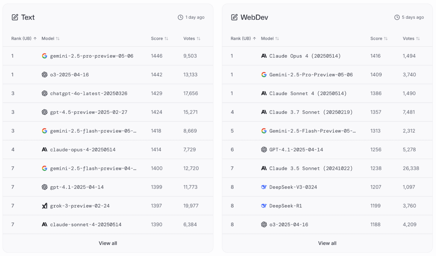 For those who aren’t familiar, LMArena is a (now venture-backed) startup that asks the internet to adjudicate anonymous “model-versus-model” cage matches (or in simpler terms, it asks people to rank their preferences of two outputs from two different models). It then open-sources the tallies in the form of a leaderboard, which anyone can peruse to understand which models perform the best across a number of tasks, including coding, web development, search, vision, and more.