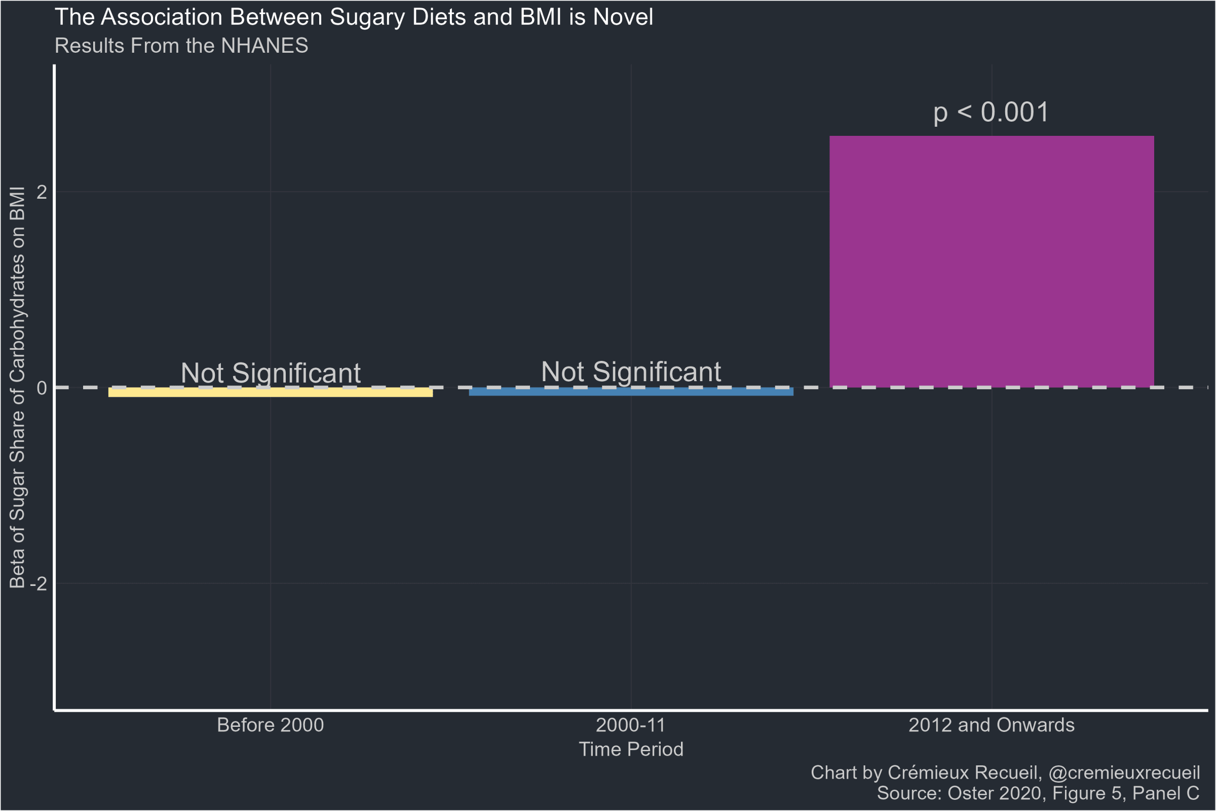 Having a more sugary diet was not related to being fat prior to the advent of the government’s advice or Taubes’ popularization of the concept that sugar is bad. And then, after healthy people stopped eating as much sugar, it became bad, at least cross-sectionally, but, because selection drove the change, probably not causally.