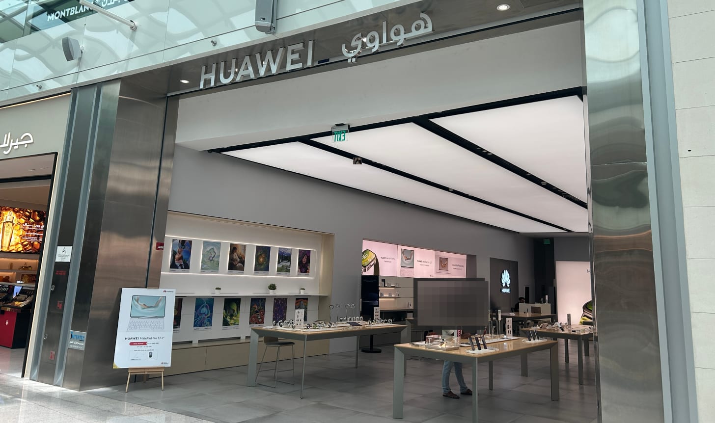 Natural wood, smooth lighting, well-designed products on tables … ah, the lines of an Apple Store. Except that there’s no Apple Stores in Doha. This was a Huawei store.