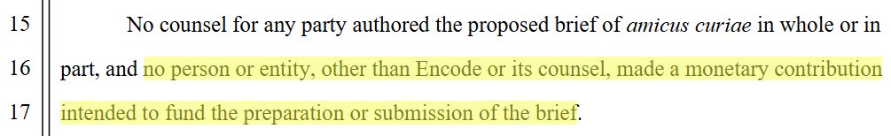This is not normal. Encode is not “subject to standard legal processes” of a party because it’s NOT a party to the case. They submitted an amicus brief (“friend of the court”) on a particular legal question – whether enjoining OAI’s restructuring would be in the public interest.
