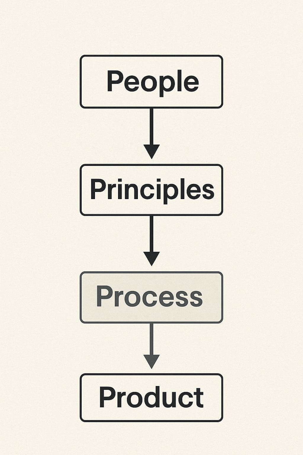 It’s easy to get swept up in the excitement of the product, the features, the roadmap, the fixes. But true, lasting progress starts earlier: with people, principles, and process. Each step builds on the next, creating a foundation that not only supports your product but magnifies its impact.