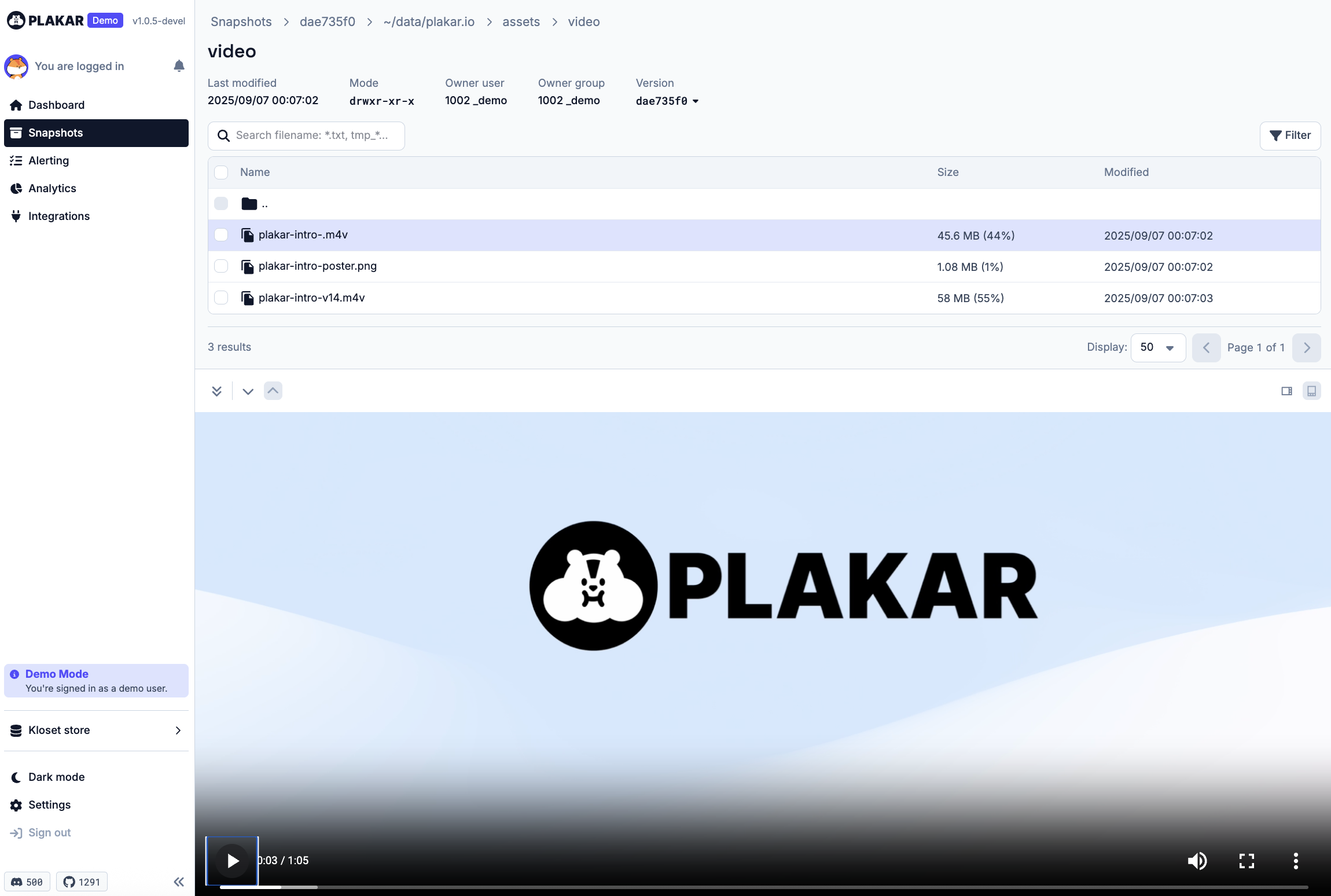 - Browsable: Browse, sort, search, and compare backups using the Plakar UI.