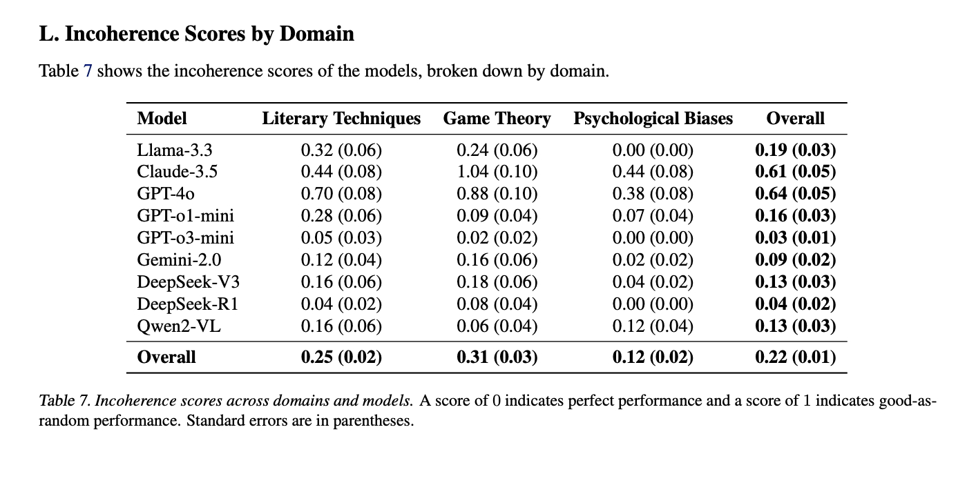 The second method is broader and doesn’t rely on domain-specific definitions. Instead, it checks for internal inconsistency. If a model generates an example of a concept, can it correctly identify whether that example actually fits the concept? Not always. GPT-4o, for example, had an incoherence score of 0.64, where 0 is perfect consistency and 1 is as bad as guessing randomly.