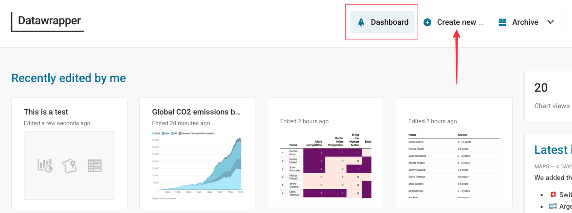 Once you publish a chart/table, it shows up in your Dashboard, so the link always stays connected to the real data—no need to re-upload or replace anything.