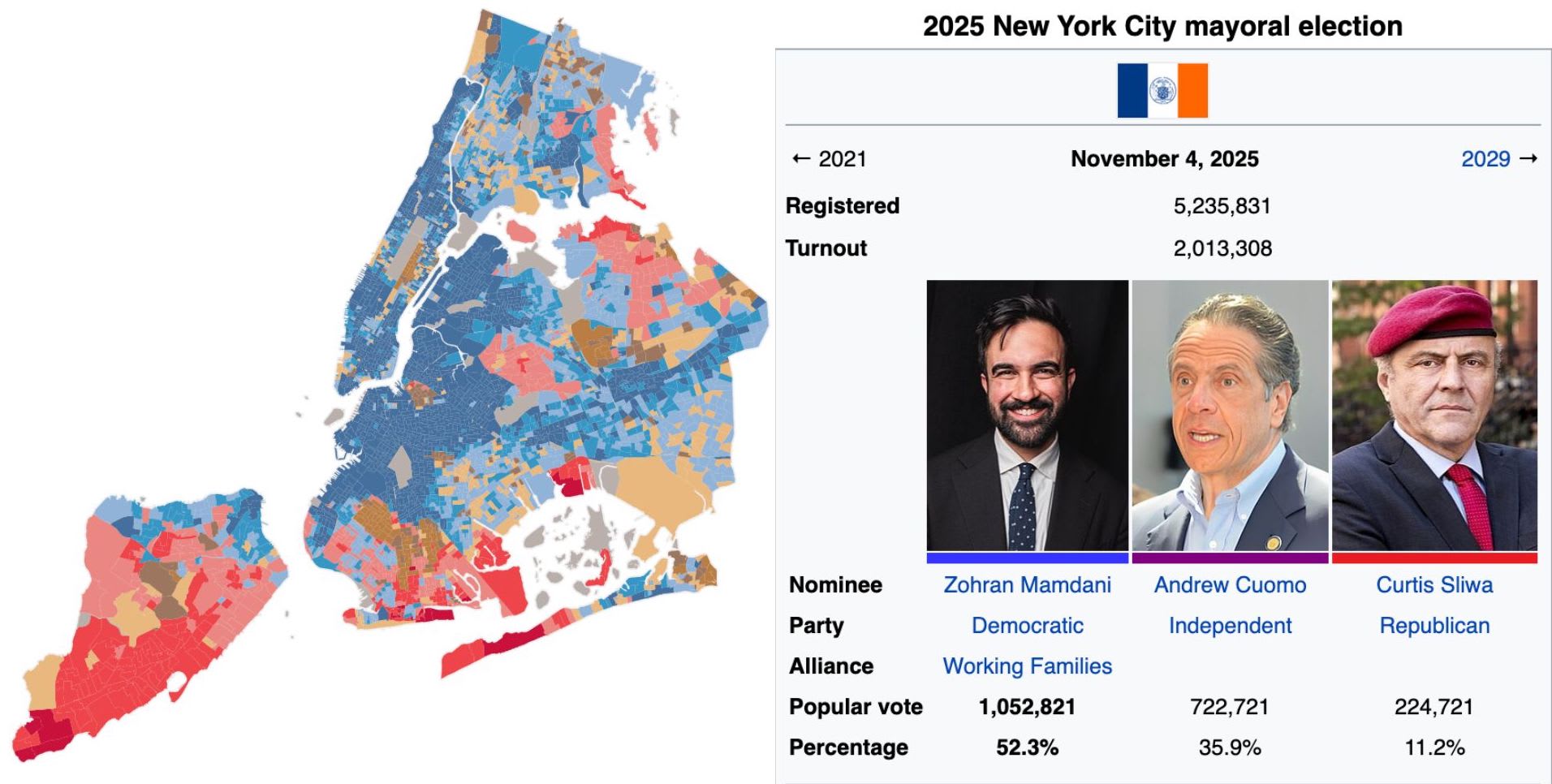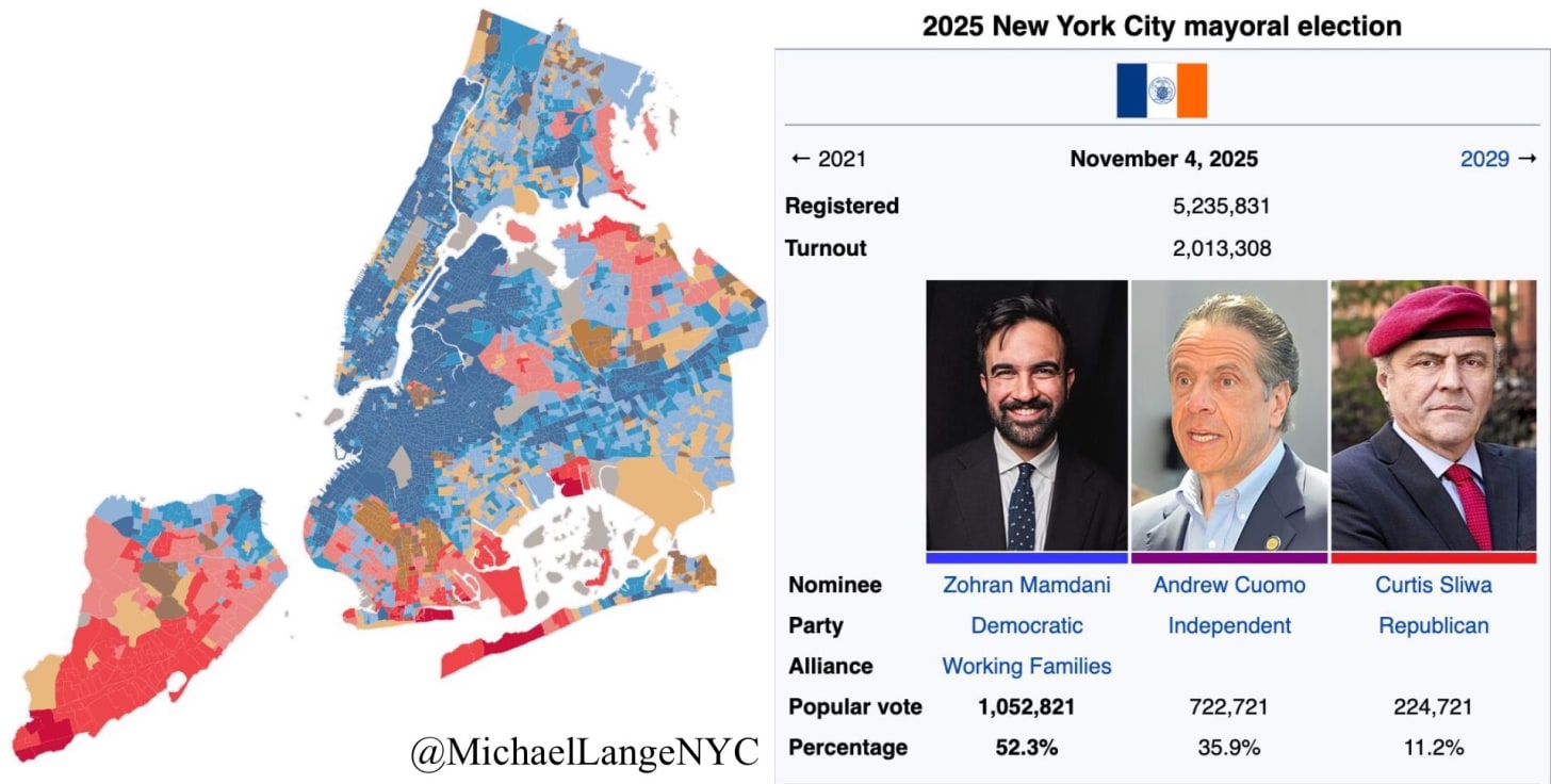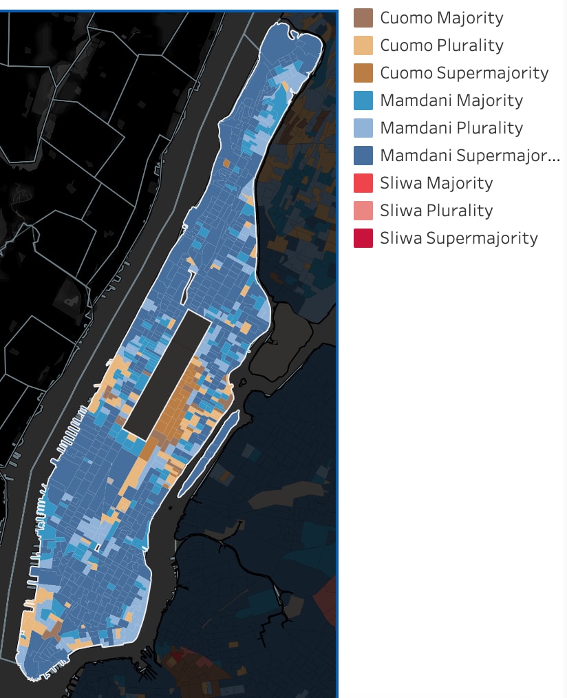 Manhattan Prediction: Mamdani 56%, Cuomo 40%, Sliwa 4%