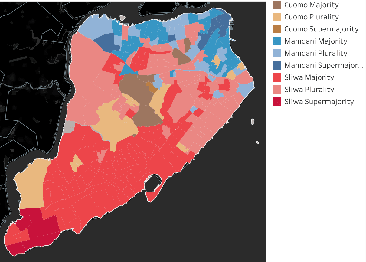 While some leadership of the powerful anti-zionist Satmar Hasidim in South Williamsburg have declined to make an endorsement, sending a letter to the community protesting the “smears against Mamdani,” (despite an eleventh hour plea from both Cuomo and Mayor Eric Adams), I expect the rank-and-file to still support either Cuomo or Sliwa. Amongst other Orthodox and Hasidic sects, in Midwood and Borough Park (and Crown Heights), I anticipate Cuomo’s margins to be even more pronounced. Along Ocean Parkway, home to the thousands of Sephardic Jews, expect Cuomo to earn a supermajority of support.