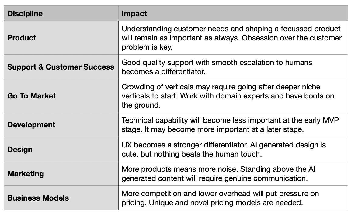 Side note: While LLMs have a huge cost impact on zero-to-one development, the efficiencies in later stages are notably less. Also, the need for evermore smart features increases the need for more expensive senior talent.