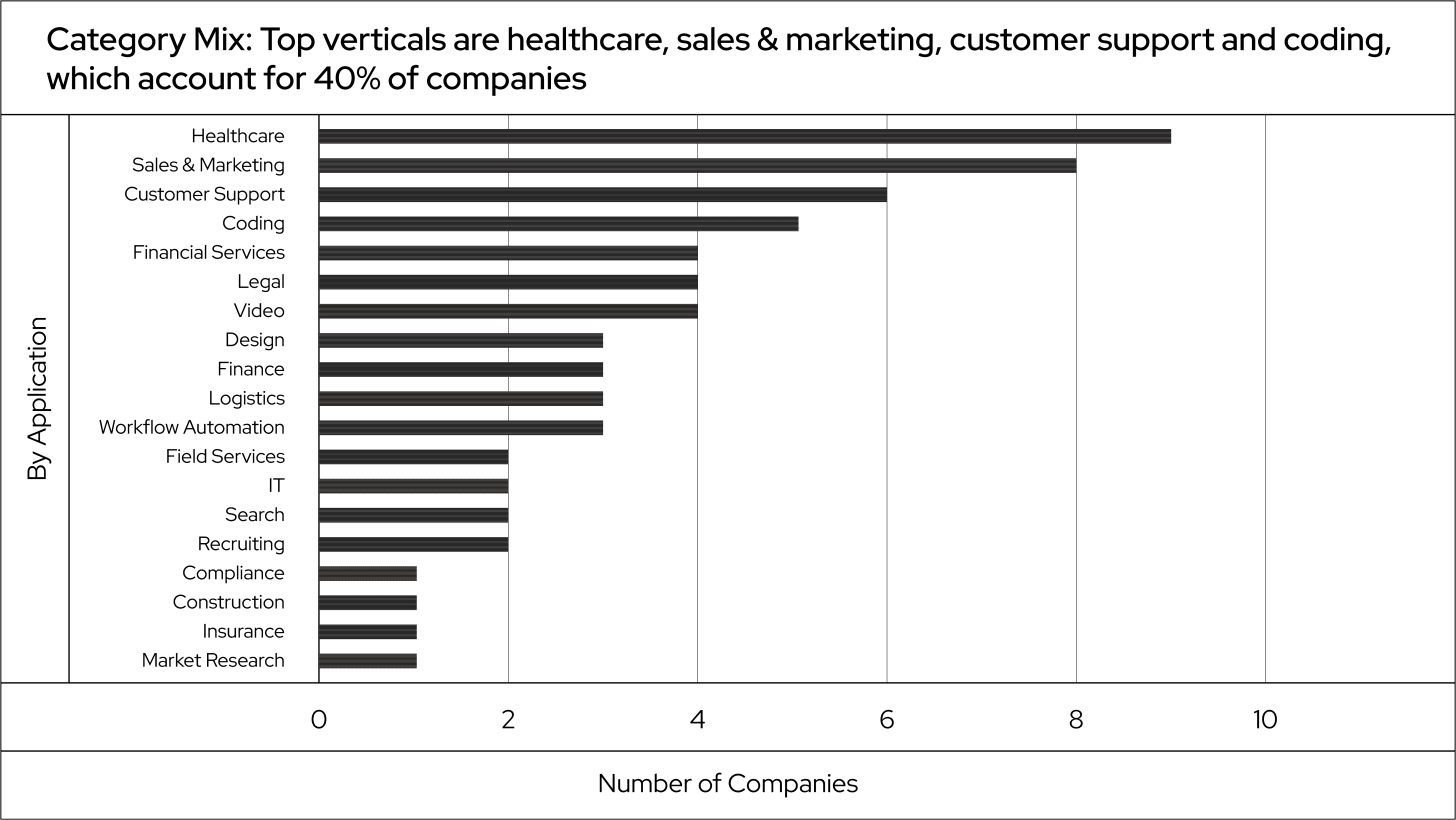 The report includes a deeper breakdown at the investment in AI that’s counting on these apps, as well as the categories that stand to see breakout winners, or several, from accounting to software development.