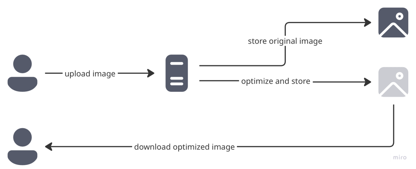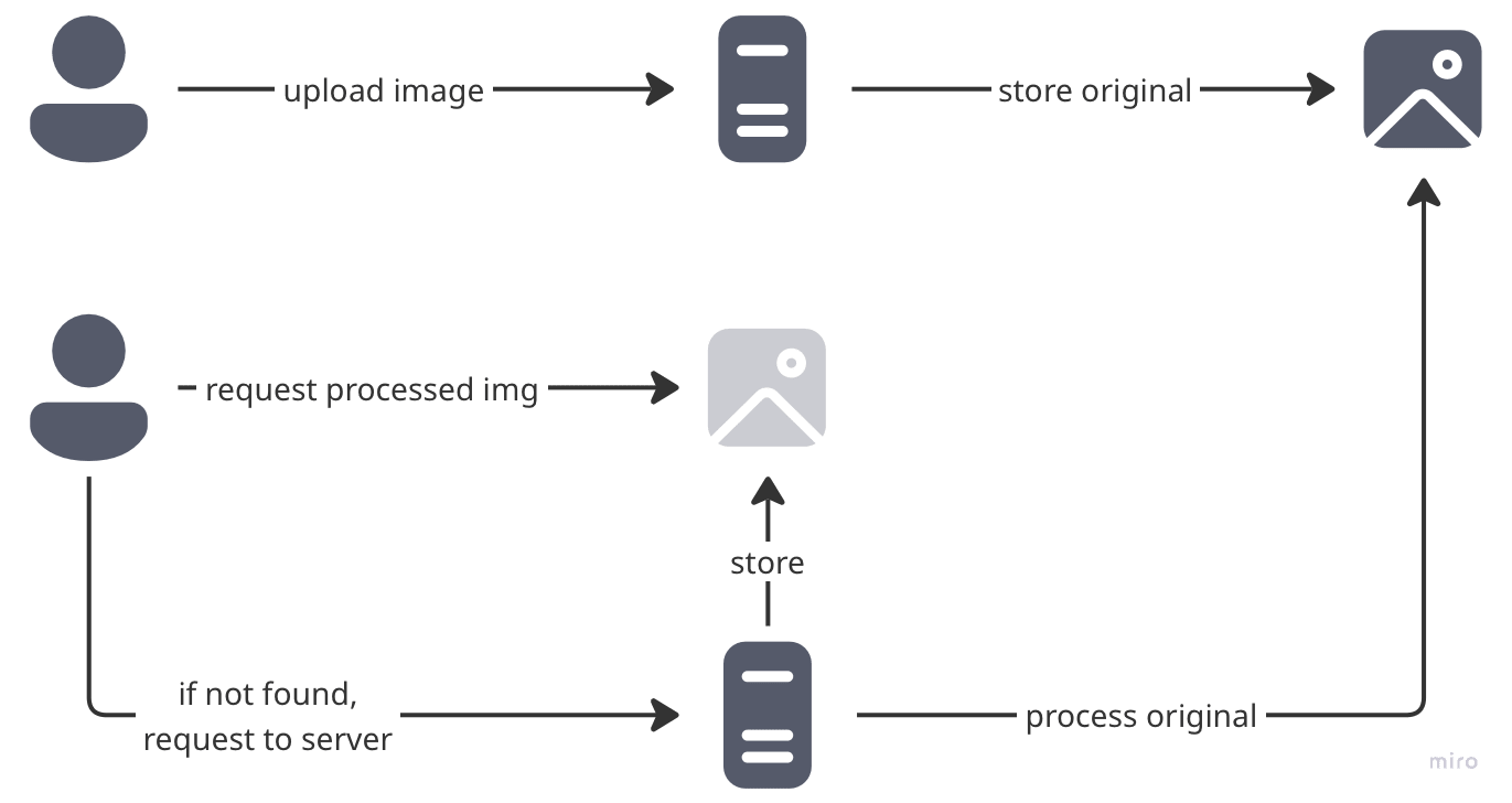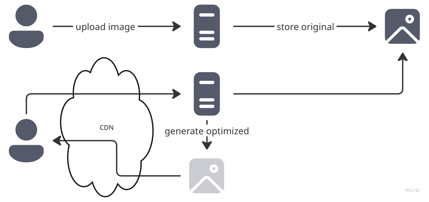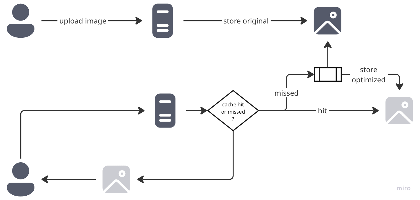 Each download request goes through this cache proxy. If the optimized image exists, it’s served. Otherwise, the image processing proxy is hit to generate and store the optimized image.